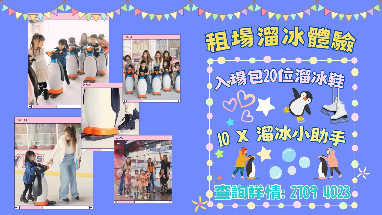 優惠包括 : 20位租借溜冰鞋及10隻企鵝 / 北極熊 / 海獅溜冰輔助器 -