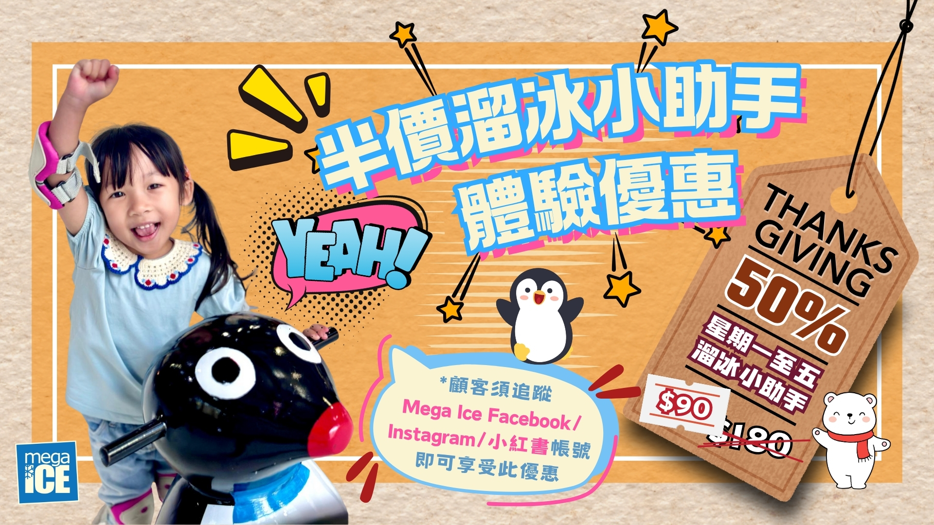優惠期間僅適用於2025年11月3日至11月28日 (星期一至五) 之公眾溜冰時段。 -