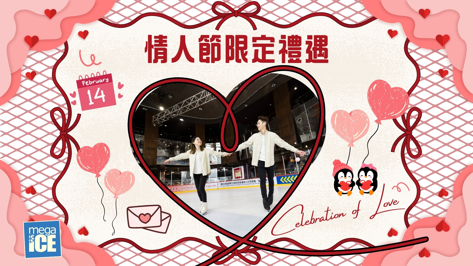請於Mega Ice官網預先訂購2月14日3點至7點之正價溜冰入場券 -